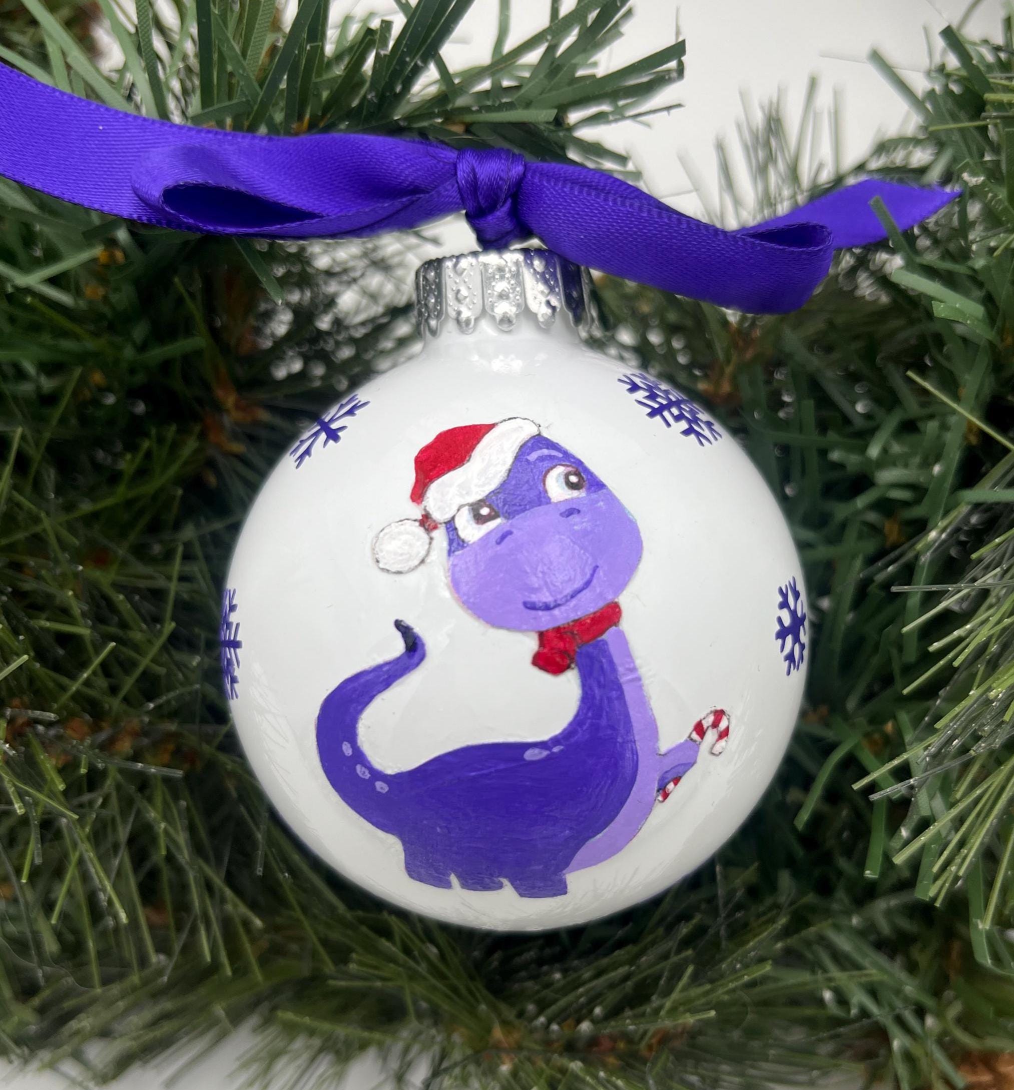 Brighten up your Christmas tree with this adorable hand painted Christmas dinosaur ornament.